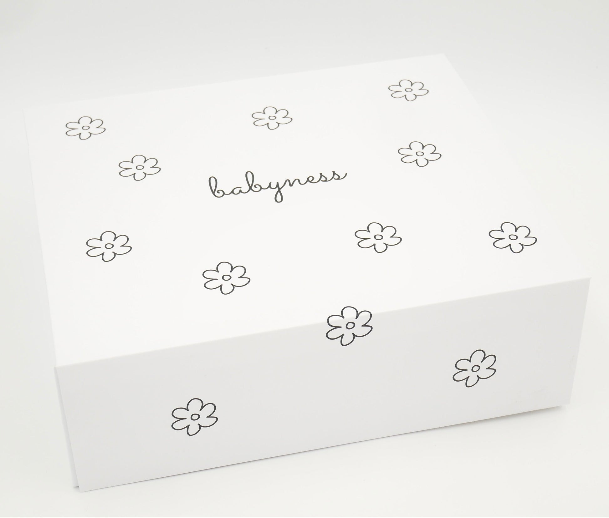 Les boîtes cadeaux Babyness offrent une finition premium avec un carton rigide de haute qualité et une fermeture aimantée élégante.